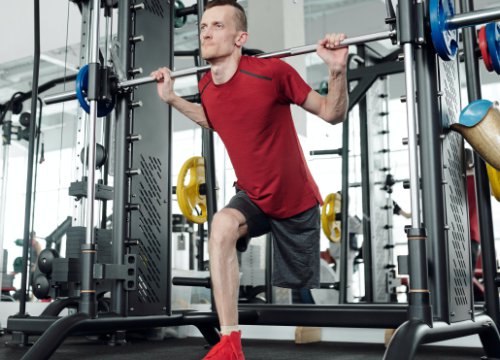 动作要领:双手放于头两侧,手肘朝两侧打开,腰背挺直,双腿微曲,保持稳定身体前屈